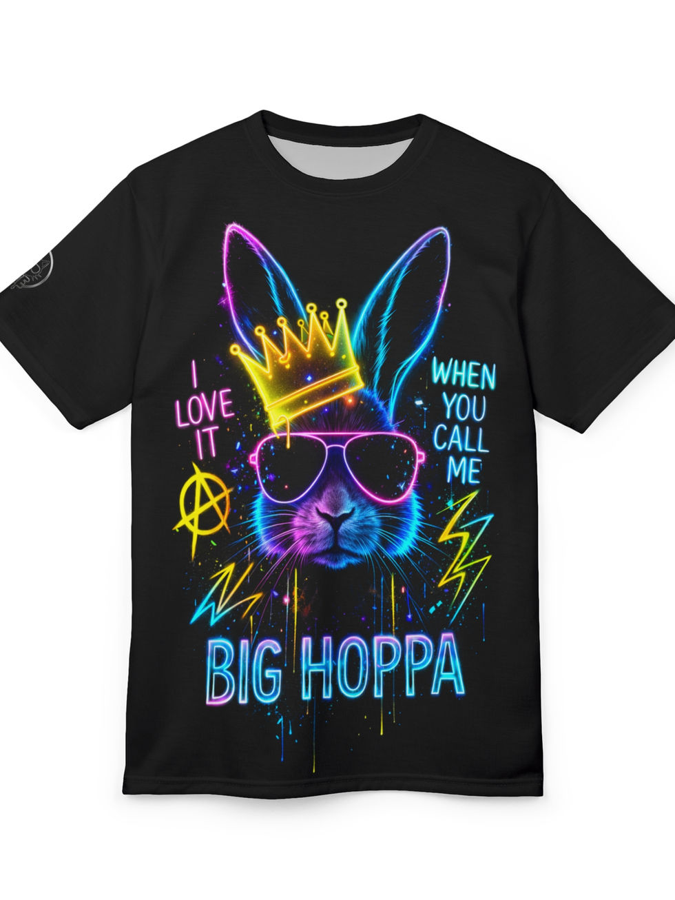 Big Hoppa Neon Graffiti Tee | Streetwear Graphic Shirt | Cyber-Grunge Rabbit Top