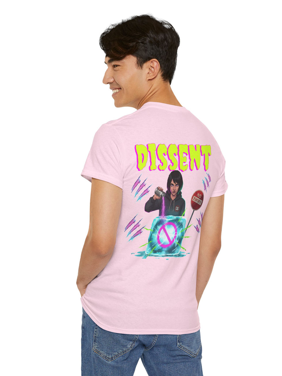 🔥 Stand out. Speak out. The Dissent Graphic Tee turns protest into art: a neon NO ICE emblem locked in an ice block while a salt shaker pours down to melt it—nonviolent, undeniable. The back graphic shouts DISSENT in electric letters, flanked by warning motifs that call out kidnappings happening in the U.S. The front chest hit features the melting block in miniature; the sleeve carries our sly cat mark. Choose your colorway—because peaceful resistance comes in more than one shade. 😼❄️🧂