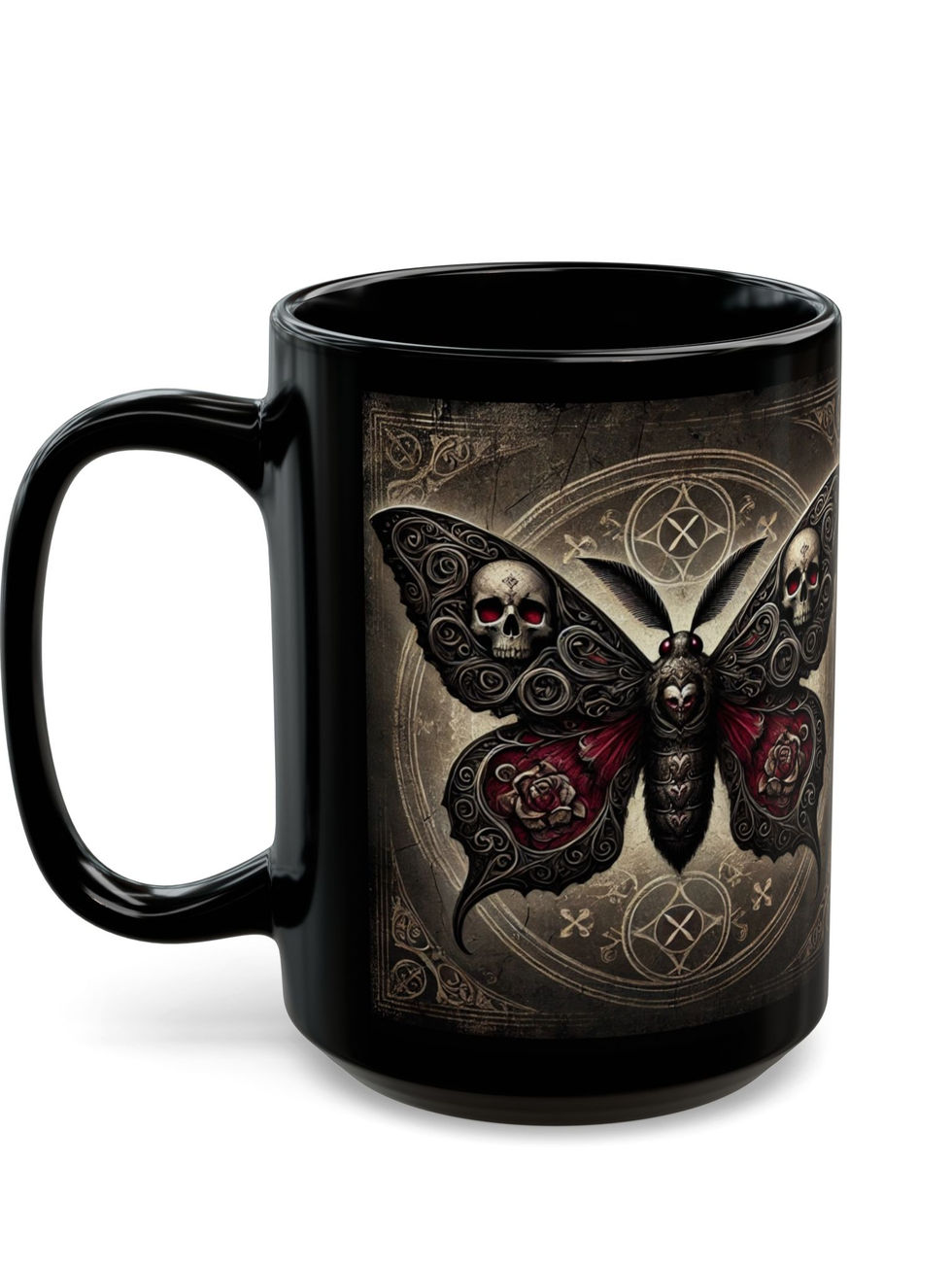 Start your day with a hauntingly beautiful touch! This Gothic Butterfly Skull Mug combines dark elegance with vintage art, making it the perfect statement piece for coffee lovers, tea drinkers, and lovers of the macabre. Featuring a striking skull-winged butterfly design on a glossy black ceramic finish, this mug brings a bold, mystical energy to your morning ritual. Whether you’re fueling up for the day or winding down at night, this mug is your perfect companion.