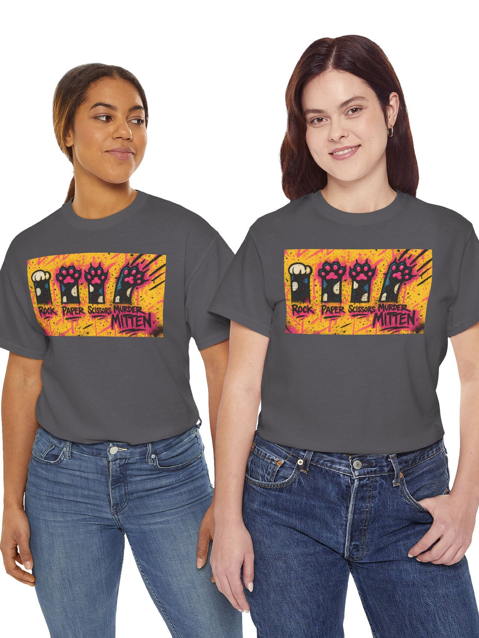 Ready to unleash chaos? 😼 Our Murder Mittens Streetwear Shirt is here to scratch up your wardrobe with fierce cat energy! Featuring bold graffiti art and those deadly adorable paws—Rock ✊, Paper ✋, Scissors ✌️… and MURDER MITTENS 🐾—this graphic tee is pure streetwear sass. Whether you’re dodging claws at home or serving streetwear looks on the streets, this shirt brings major attitude. Made for cat lovers, artists, and rebels who live life with claws out, this heavy cotton shirt brings comfort, color, and chaos in one fierce package. 🧥👟💥