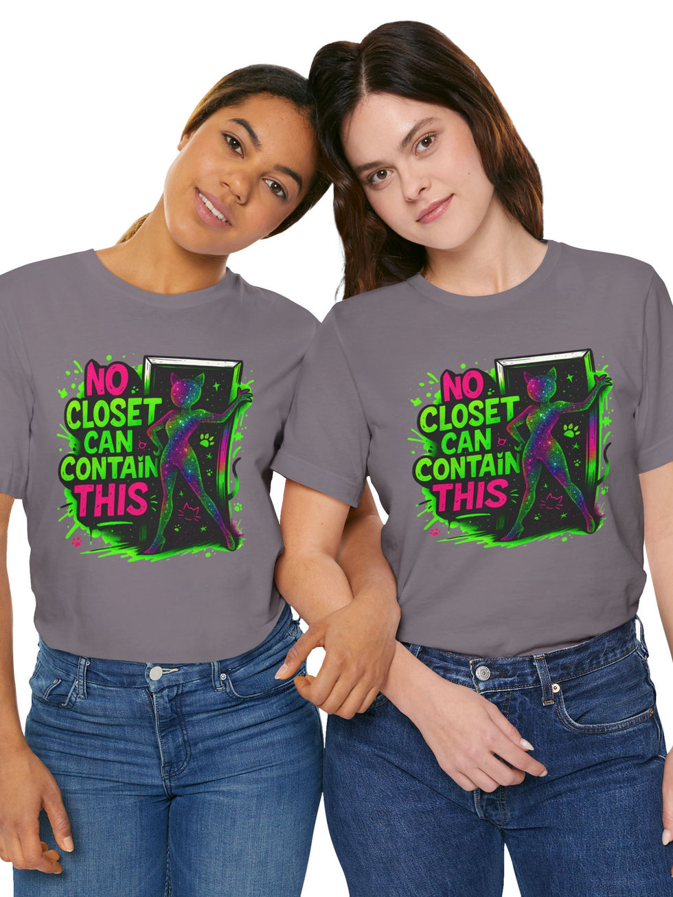 🐾 Graffiti-style LGBTQ+ streetwear tee with “No Closet Can Contain This” design