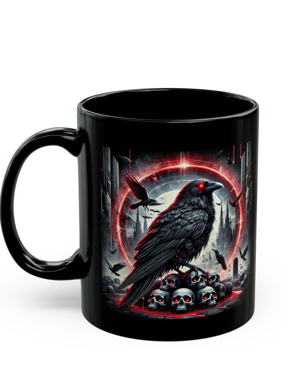 Step into the shadows with this Dark Fantasy Raven Mug, a must-have for lovers of gothic art, dark aesthetics, and eerie elegance. Featuring a hauntingly detailed raven design, glowing red eyes, and a dystopian backdrop, this mug is perfect for those who embrace the mystical, macabre, and mysterious. Whether you’re sipping your morning coffee, indulging in a late-night tea, or fueling your creative energy, this black ceramic mug adds a bold touch to your drinkware collection. An ideal gift for raven lovers, gothic decor enthusiasts, and Halloween aficionados, this edgy and unique cup makes every sip an immersive experience. Perfect for birthdays, spooky season, or simply for those who dare to stand out!