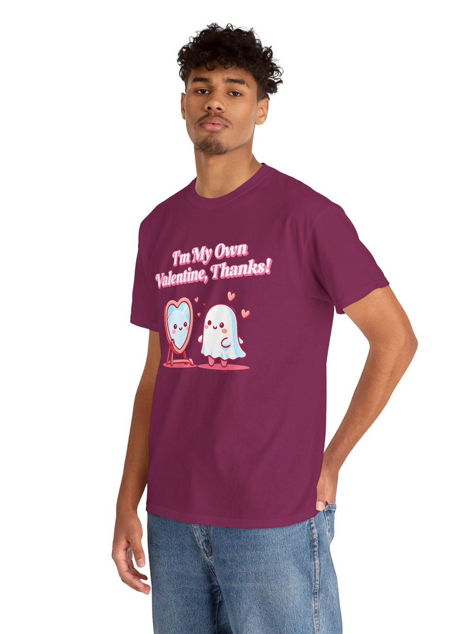 Spread some self-love with the "I'm My Own Valentine, Thanks!" Graphic Tee! Featuring a sassy and adorable design of a cartoon ghost admiring itself in a heart-shaped mirror, this unisex streetwear t-shirt is the ultimate statement piece for anyone who embraces independence and quirky fashion. Perfect for Valentine’s Day or any day you feel like celebrating yourself, this tee combines comfort, humor, and style effortlessly.