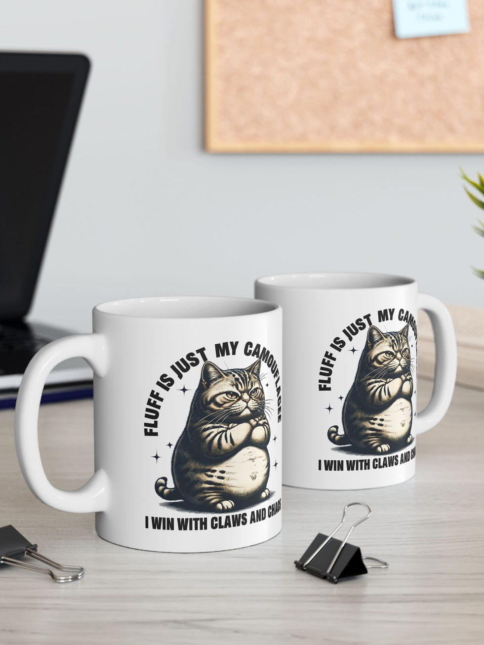 Show off your feline attitude with this hilarious cat mug! Featuring a smug, chonky cat with the bold statement "Fluff Is Just My Camouflage – I Win with Claws and Chaos", this mug is perfect for anyone who knows that behind every fluffy kitty lies a mastermind of mischief. Whether you're sipping coffee, tea, or plotting your next move (just like your cat), this mug adds a playful touch to your daily routine. An ideal gift for cat lovers, pet parents, and anyone who appreciates a little sass, this funny ceramic mug is a must-have for birthdays, holidays, or just because. Perfect for home, office, or anywhere a little feline-inspired chaos is welcome!