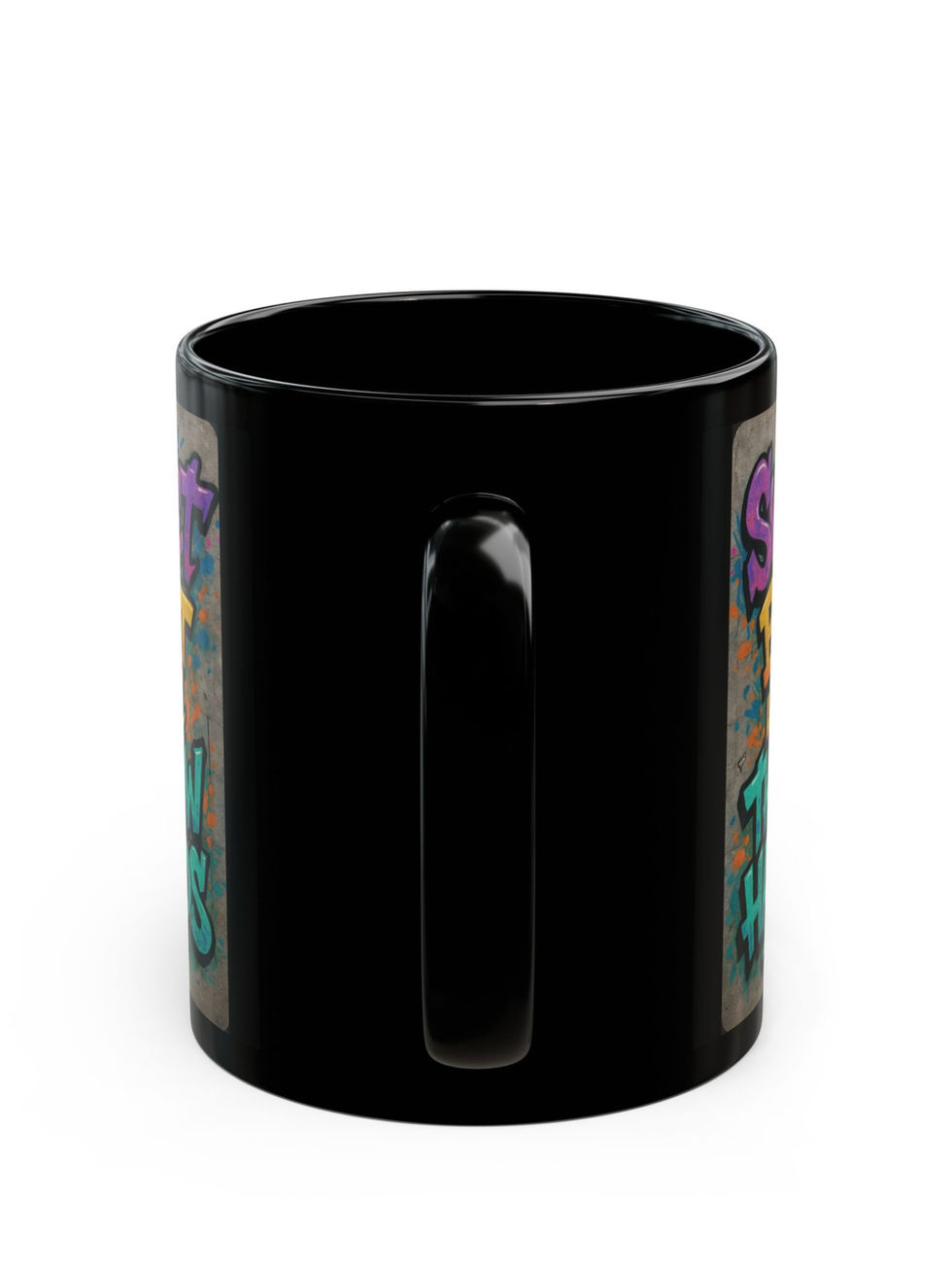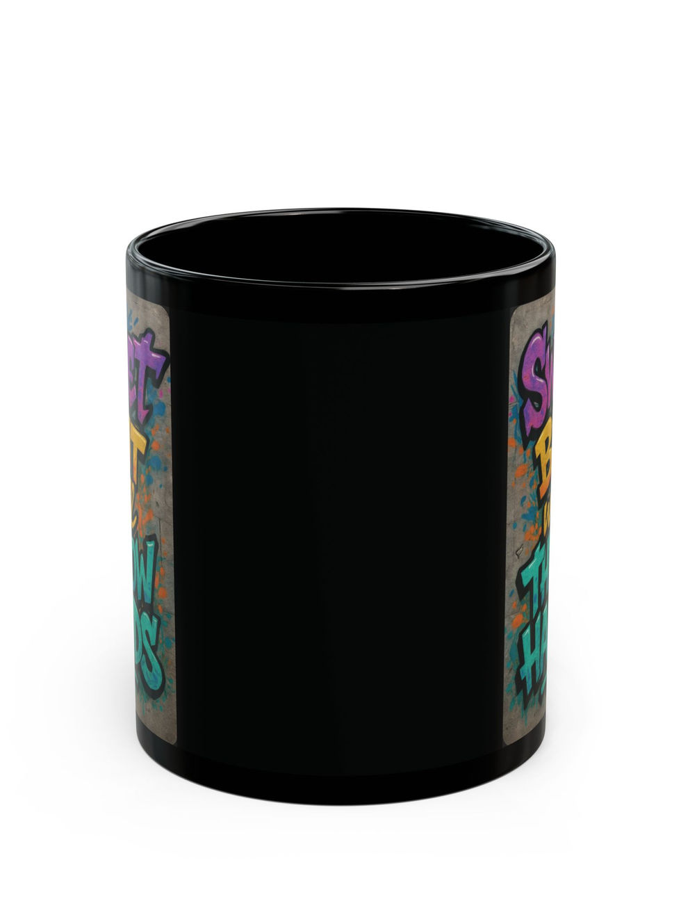 Sweet But Will Throw Hands Graffiti Coffee Mug | Black Ceramic Cup for Adults