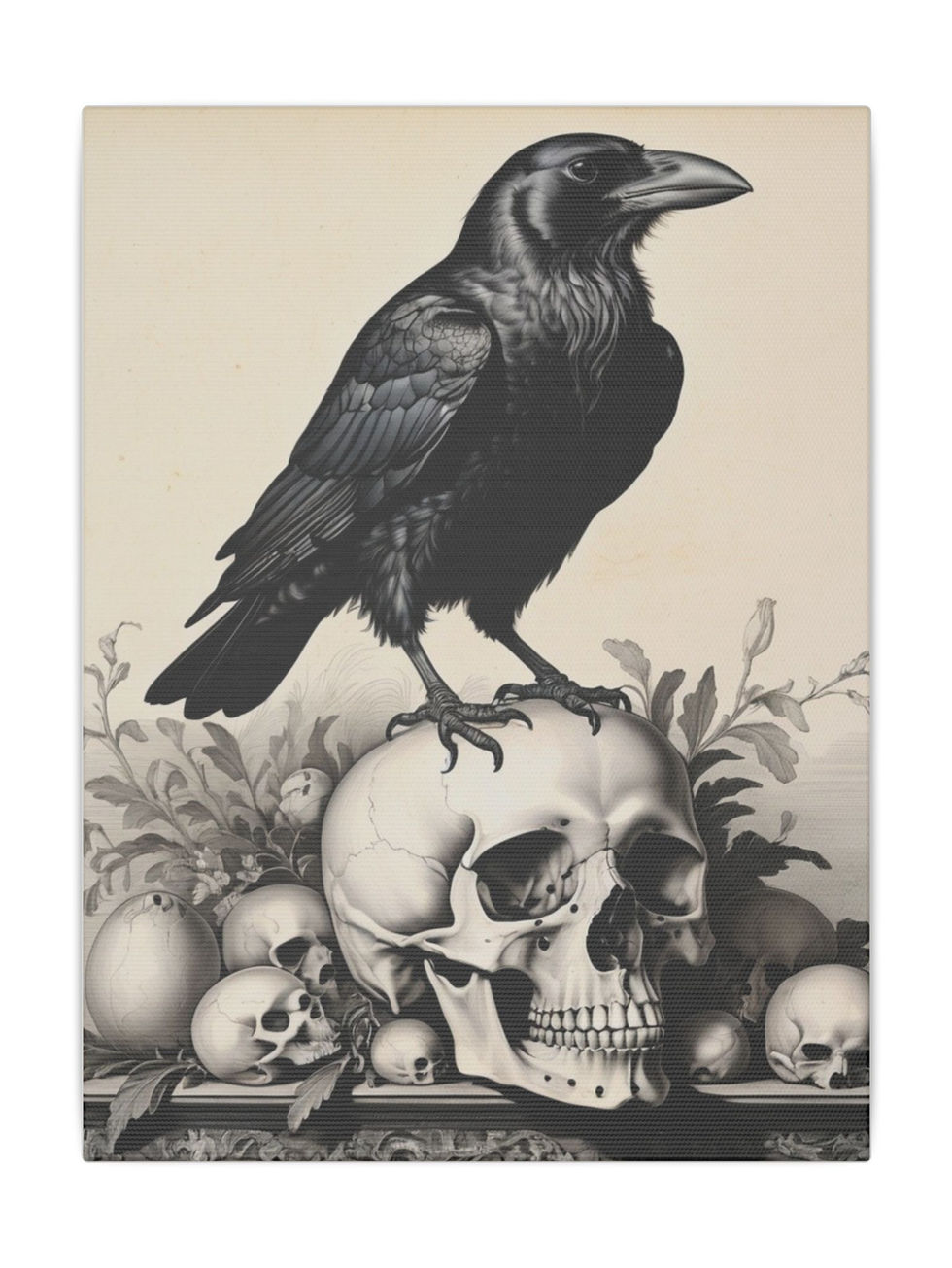 The Raven's Omen Canvas - Dark Gothic Wall Art that adds a mysterious and eerie vibe to any space. Perfect for lovers of gothic art and dark aesthetics. Ideal for Halloween decorations, horror enthusiasts, and those who appreciate unique, dark artwork.