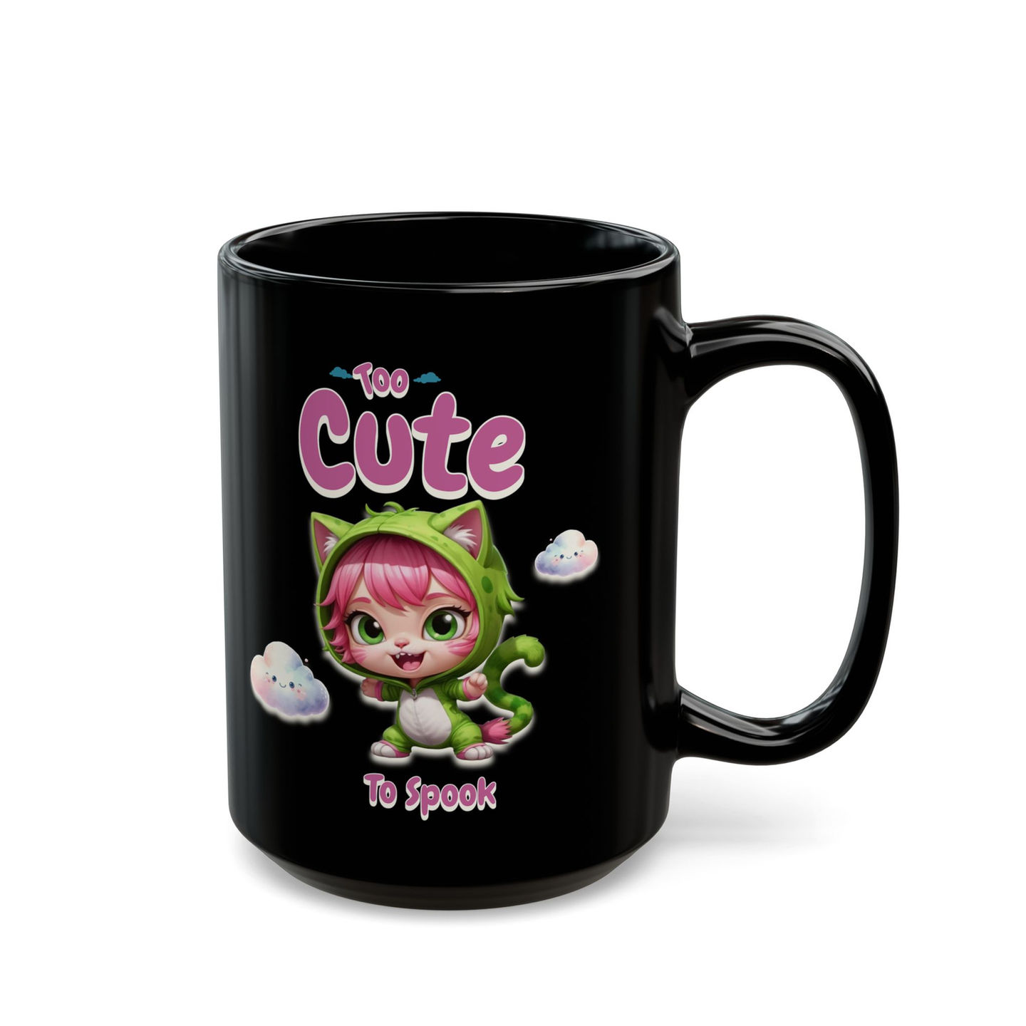 Too Cute to Spook Kawaii Black Mug (11oz, 15oz) - Adorable Halloween Cup