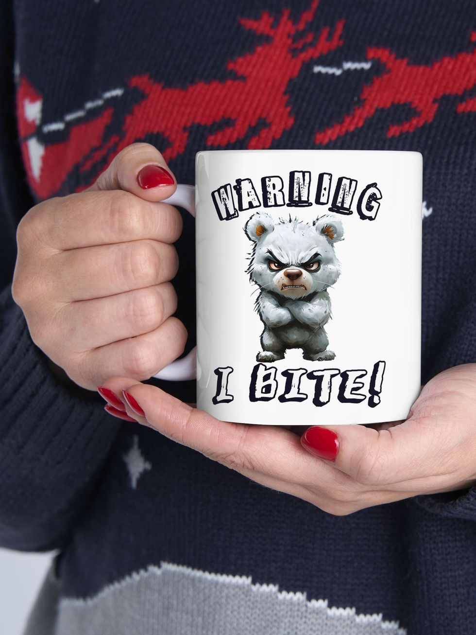 Warning: Angry Bear, I Bite! Ceramic Mug (11oz, 15oz) – Unhinged Graphic Cup